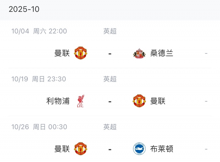 曼联赛程: